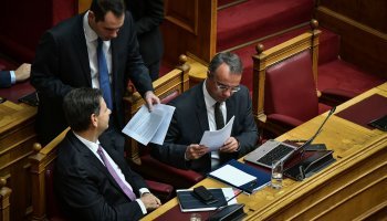 Απαντώντας στους εισηγητές του "Κινήματος Αλλαγής" και του ΚΚΕ ότι δεν έχει αλλάξει η οικονομική πολιτική, εξέφρασε τον φόβο ότι "παρασύρονται από πολιτικό βολονταρισμό: Είναι σαφές ότι έχει υπάρξει αλλαγή οικονομικής πολιτικής, διότι πάμε από την υπερφορολόγηση και τα υπερπλεονάσματα σε φοροελαφρύνσεις, που δίνουν κίνητρα για ανάπτυξη, την οποία χρηματοδοτούμε από τη μείωση της φοροδιαφυγής και την κατάργηση των υπερπλεονασμάτων".