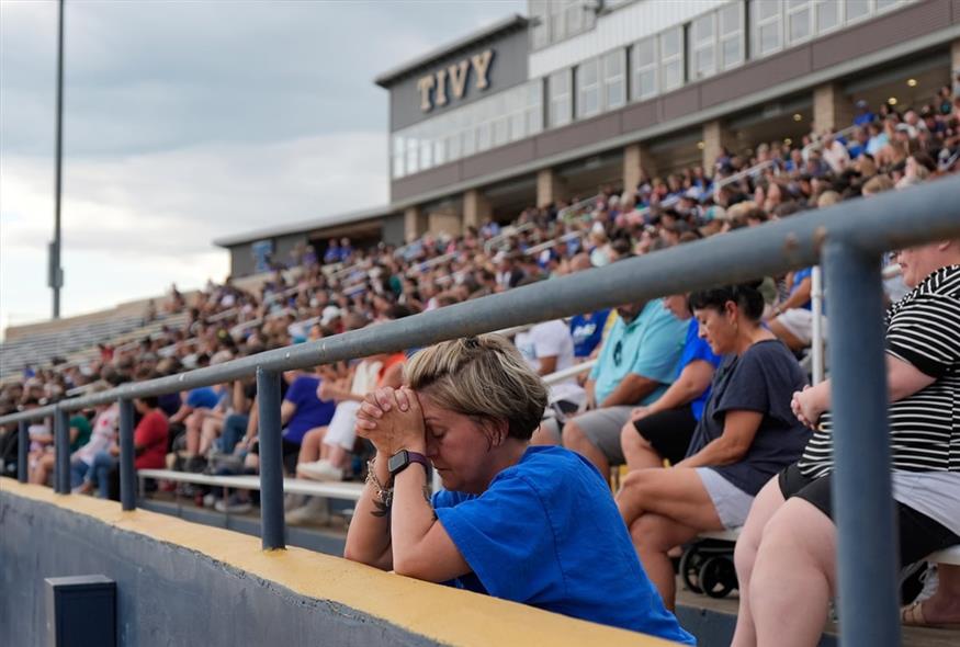 Κλίμα οδύνης στην πολιτεία των ΗΠΑΣτο στάδιο του σχολείου Tivy στην κομητεία Κερ συγκεντρώθηκε πλήθος ανθρώπων, προκειμένου να θρηνήσουν για τα θύματα των καταστροφικών πλημμυρών που έπληξαν την περιοχή του Τέξας.