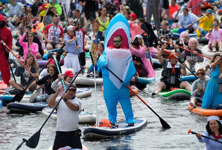 Χιλιάδες άτομα ντυμένα με ιδιαίτερα κοστούμια και πάνω στις σανίδες SUP τους συγκεντρώθηκαν το Σάββατο, 2 Αυγούστου, στα κανάλια της Αγίας Πετρούπολης στη Ρωσία, για το ετήσιο φεστιβάλ Fontanka SUP.