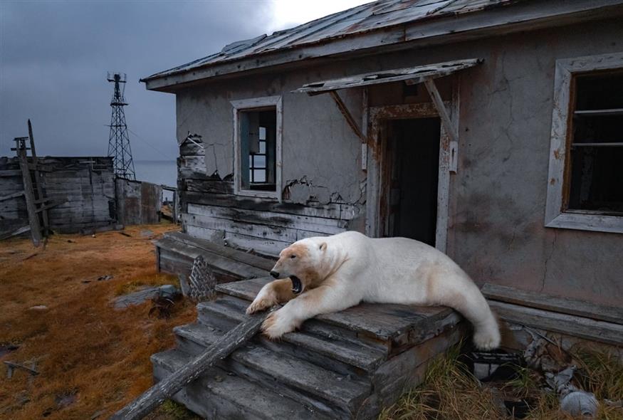Μια αγέλη πολικών αρκούδων βρήκε καταφύγιο σε εγκαταλελειμμένο σοβιετικό ερευνητικό σταθμό στο νησί Κολιούτσιν, στη Θάλασσα Τσούκτσι της ρωσικής Αρκτικής.