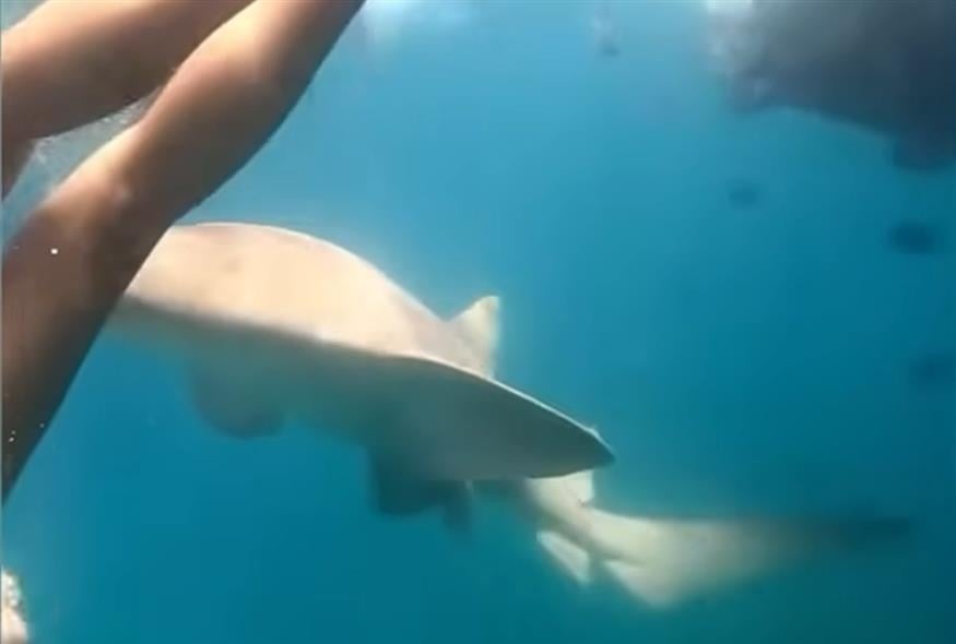 Ένα βίντεο κατέγραψε την τρομακτική στιγμή, με τον καρχαρία να επιτίθεται ξαφνικά και να τη δαγκώνει στον μηρό.