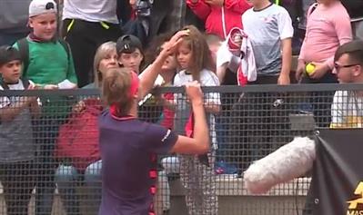 Ο Γερμανός τενίστας «κάρφωσε» με δύναμη πετυχαίνοντας μια μικρή θεατή στο κεφάλι αλλά της χάρισε την κορδέλα του κάνοντάς την να ξεχάσει το χτύπημα