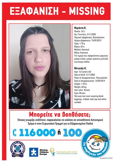 Εξαφάνιση 16χρονης από την Θεσσαλονίκη