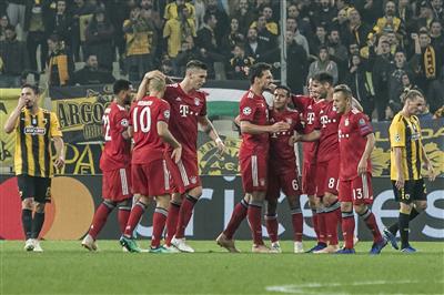 Η ΑΕΚ έμεινε όρθια απέναντι στην Μπάγερν Μονάχου για 60 λεπτά, όμως μέσα σ' ένα τρίλεπτο (61'-64') οι Βαυαροί πάτησαν γκάζι και καθάρισαν το ματς (0-2). Οι πρωταθλητές Γερμανίας επιβλήθηκαν της «Ένωσης» στο κατάμεστο ΟΑΚΑ, με τα γκολ των Χάβι Μαρτίνεθ (61') και Ρόμπερτ Λεβαντόφσκι (63'). Οι «κιτρινόμαυροι» έχασαν για τρίτη φορά σε ισάριθμους αγώνες στον 5ο όμιλο του Champions League.