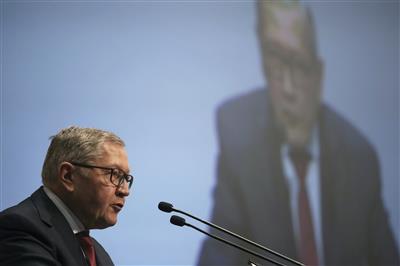 Ο ευρωβουλευτής της ακροδεξιάς Λέγκας σε μια πρωτοφανή κίνηση, αμέσως μετά την ομιλία Μοσκοβισί, έβγαλε το παπούτσι του και «συνέθλιψε» τις σημειώσεις του.