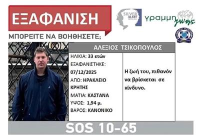 Συνεχίζονται οι έρευνες στην υπόθεση εξαφάνισης του 33χρονου γιατρού στο Ηράκλειο Κρήτης