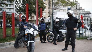 Στις φωτογραφίες απεικονίζεται ο αστυνομικός να έχει προτεταμένο το όπλο, ενώ απέναντί του βρίσκονται νεαροί🕛 χρόνος ανάγνωσης: 2 λεπτά ┋