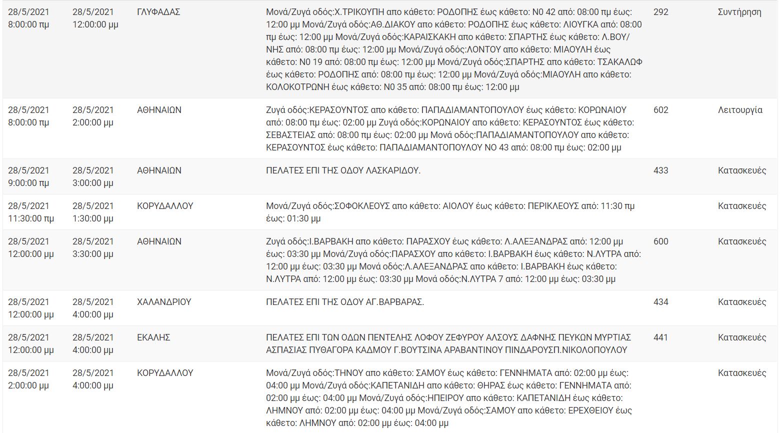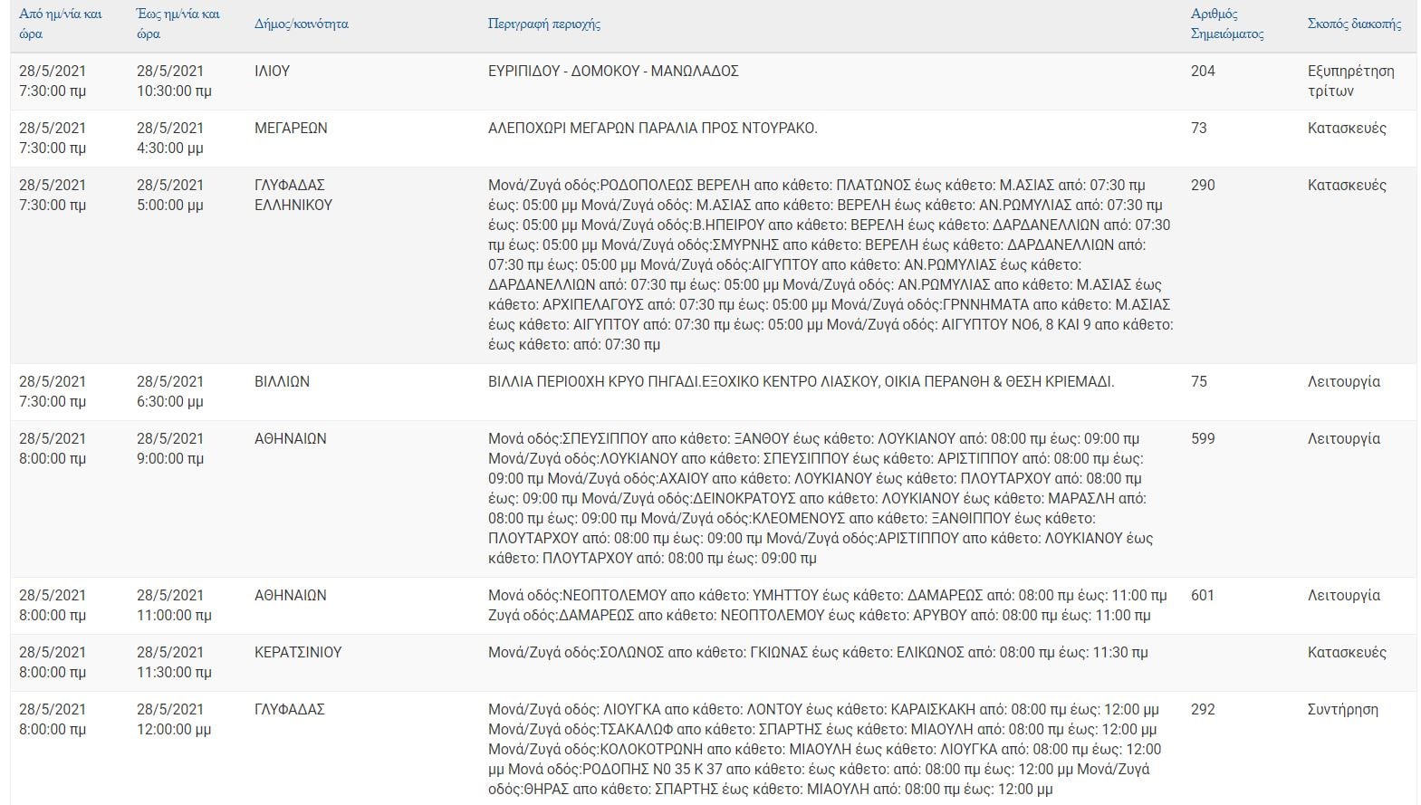 Διακοπή ρεύματος έχει προγραμματίσει για σήμερα, Παρασκευή 28 Μαΐου, η ΔΕΔΔΗΕ σε αρκετές περιοχές της Αττικής στις οποίες περιλαμβάνονται, μεταξύ άλλων, το κέντρο της Αθήνας, η Γλυφάδα, το Χαλάνδρι και ο Κορυδαλλός.