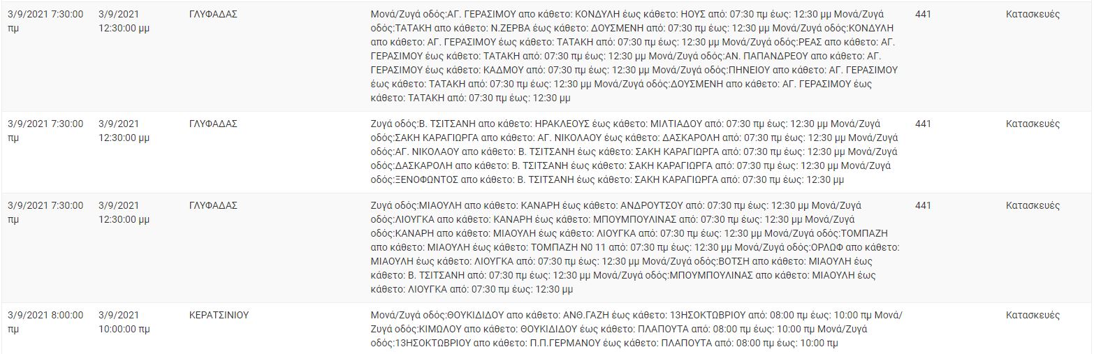 Οι διακοπές ρεύματος σύμφωνα με τις ανακοινώσεις του ΔΕΔΔΗΕ