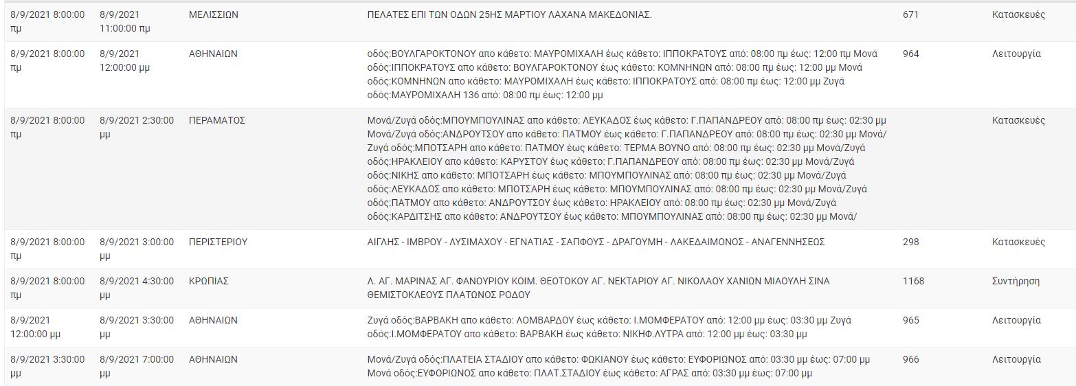 Οι διακοπές ρεύματος σύμφωνα με τις ανακοινώσεις του ΔΕΔΔΗΕ
