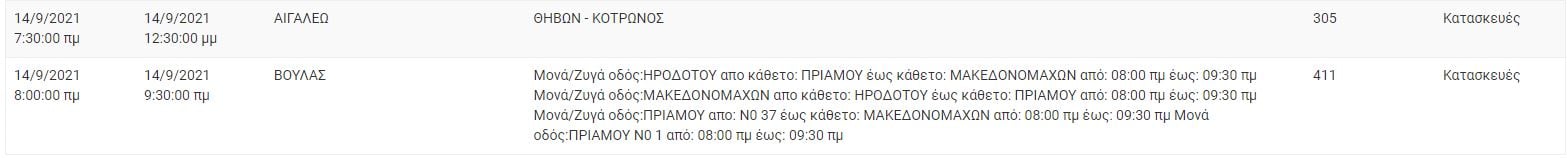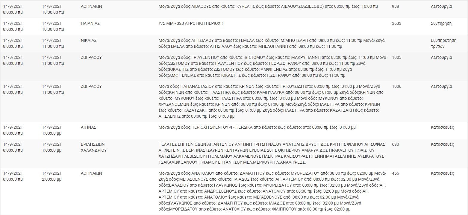 Αναλυτικά οι πίνακες με τις περιοχές της Αττικής και τις ώρες που θα σημειωθεί διακοπή ρεύματος: