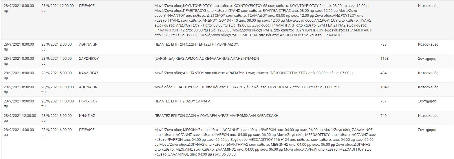 Αναλυτικά οι πίνακες με τις περιοχές της Αττικής και τις ώρες που θα σημειωθεί διακοπή ρεύματος: