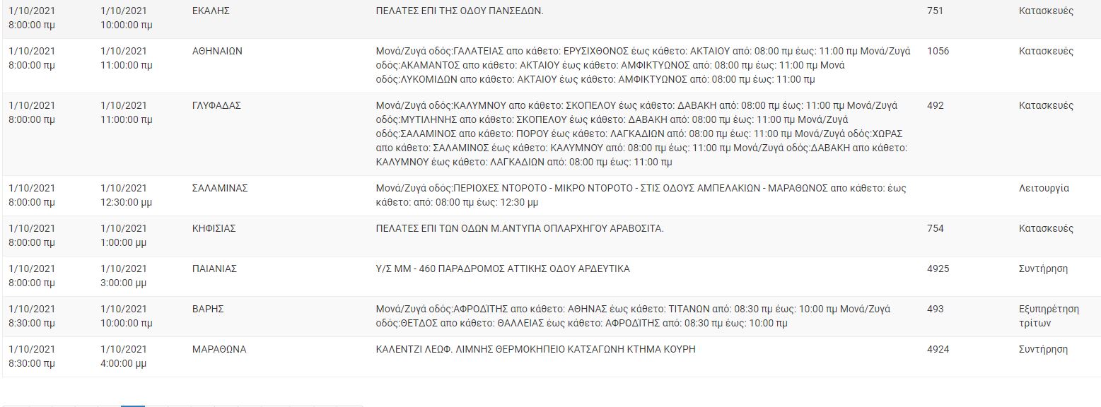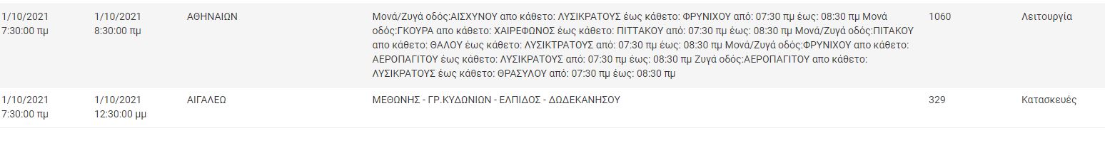 Αναλυτικά οι πίνακες με τις περιοχές της Αττικής και τις ώρες που θα σημειωθεί διακοπή ρεύματος: