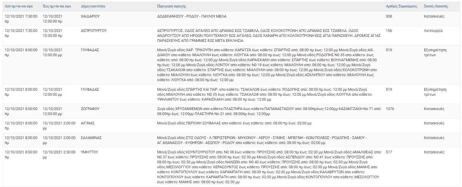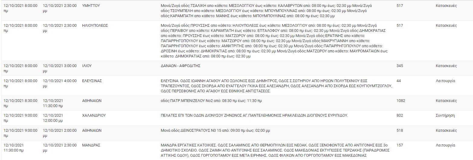 Αναλυτικά οι πίνακες με τις περιοχές της Αττικής και τις ώρες που θα σημειωθεί διακοπή ρεύματος: