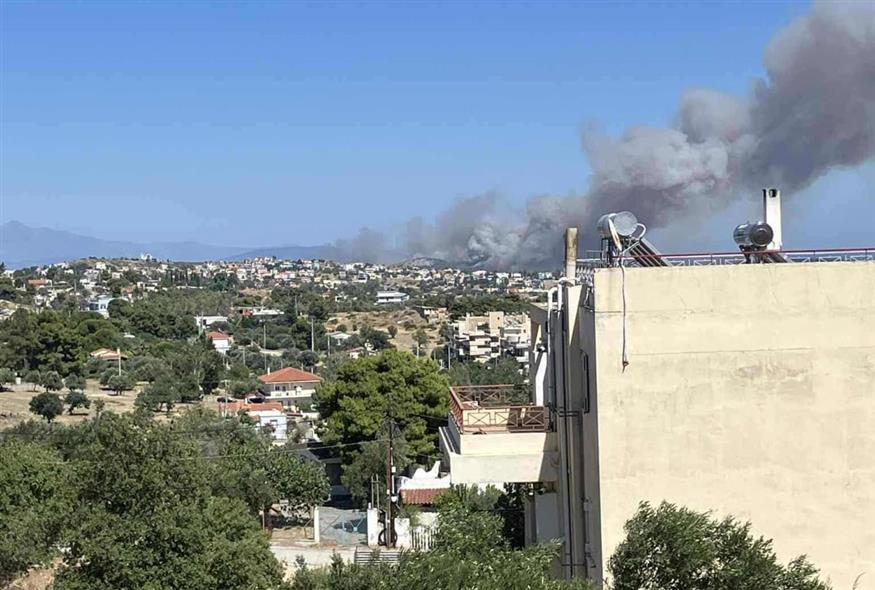 Η φωτιά εκδηλώθηκε γύρω στις 15:00 το μεσημέρι στη συμβολή των οδών της Λεωφόρου Μαραθώνος και Αρίωνος, κοντά σε κατοικίες, και εξελίσσεται σε μεικτή ζώνη κατοικιών και πρασίνου, ενώ χαρακτηρίζεται από την Πυροσβεστική "δύσκολη και επικίνδυνη".