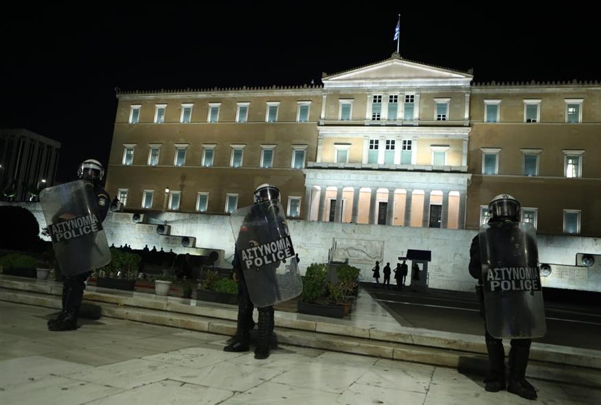 Έτσι, οι αστυνομικές δυνάμεις δεν αφήνουν τον κόσμο να προσεγγίσει το μνημείο του Αγνώστου Στρατιώτη.