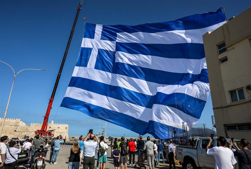 28η Οκτωβρίου: Έπαρση ελληνικής σημαίας-γίγας 1.140 τ.μ. στο Ηράκλειο - Εντυπωσιακές εικόνες