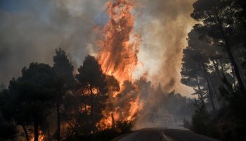 Οι άνεμοι που είναι τοπικά ιδιαίτερα ισχυροί με βόρεια και δυτική κατεύθυνση οδηγούν τις φλόγες μέσα πευκόδασος το οποίο καίγεται αυτήν τη στιγμή και οι καπνοί έχουν καλύψει το μεγαλύτερο μέρος της Ευβοίας και έχουν φτάσει μέχρι και την Αττική.