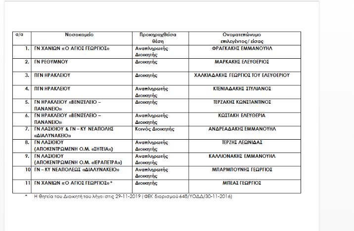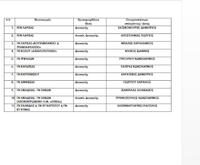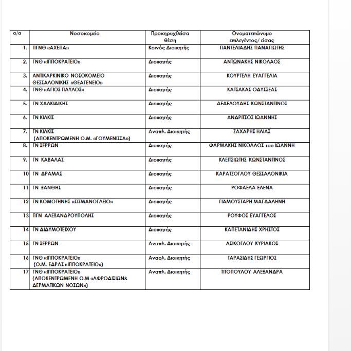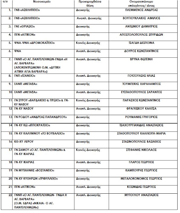 Αυτοί είναι όλοι οι διοικητές και αναπληρωτές διοικητές των νοσοκομείων