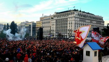 Πλιάτσικο σε μαχαίρια, τσιγάρα, μπουκάλια από τους οπαδούς Ολυμπιακού και Ερυθρού Αστέρα
