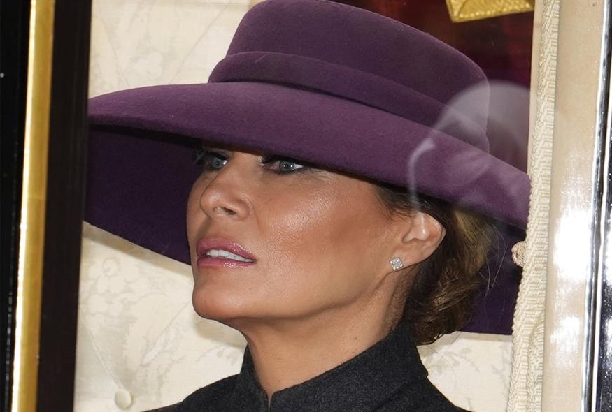 Αυτό που σχολιάστηκε ιδιαίτερα από τον διεθνή Τύπο ήταν το επιβλητικό σύνολο της Πρώτης Κυρίας των ΗΠΑ: ένα βαθύ μωβ-μπλε ταγιέρ, συνδυασμένο με ένα εντυπωσιακό καπέλο με μεγάλο και χαμηλό γείσο, που έκρυβε σε μεγάλο βαθμό το πρόσωπό της. Αν και η επιλογή καπέλου εναρμονίζεται με το βασιλικό πρωτόκολλο, το συγκεκριμένο σχέδιο προκάλεσε συζητήσεις, θυμίζοντας την αντίστοιχη εμφάνισή της στην ορκωμοσία του Ντόναλντ Τραμπ, όταν επίσης το πρόσωπό της καλυπτόταν σχεδόν εξ ολοκλήρου.