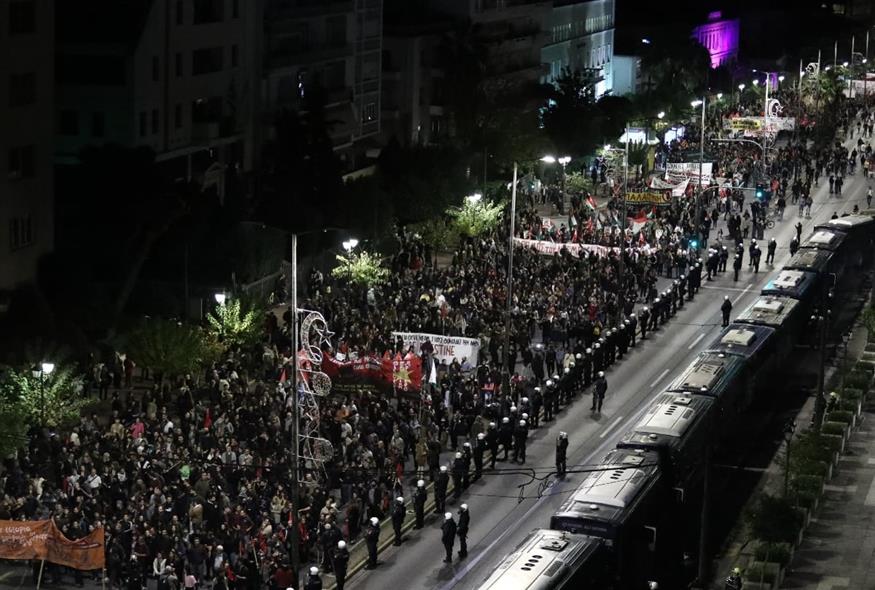 Θεσσαλονίκη: Ένταση στην πορεία – Άγνωστοι πέταξαν αντικείμενα στους αστυνομικούς