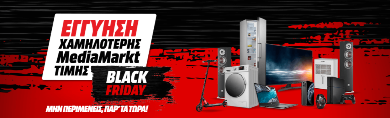 H περίοδος Black Friday φέτος ξεκινάει νωρίτερα, για να προλάβουν όλοι να αγοράσουν ό,τι χρειάζονται με την ησυχία τους. Στη ΜediaMarkt δεν χρειάζεται να περιμένετε την ημέρα της Black Friday για να έχετε την καλύτερη τιμή, γιατί σας δίνουν εγγύηση χαμηλότερης MediaMarkt τιμής. Δηλαδή ψωνίζεις από τώρα και αν η MediaMarkt ρίξει την τιμή μέχρι και τις 30 Νοεμβρίου, σου επιστρέφει τη διαφορά.