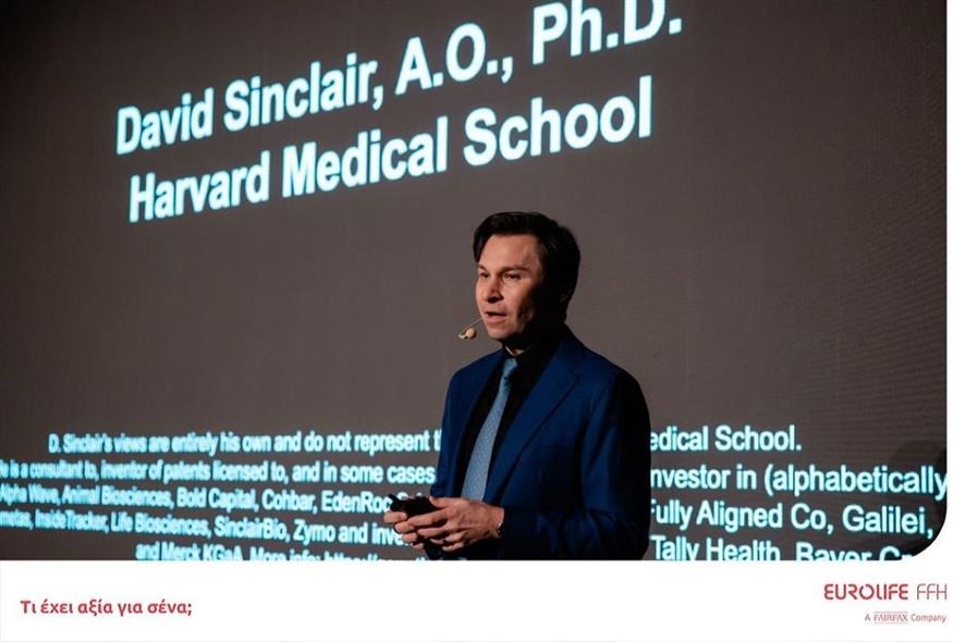 Ο Δρ. David Sinclair είναι Καθηγητής στο Τμήμα Γενετικής της Ιατρικής Σχολής του Χάρβαρντ, στο Ινστιτούτο Blavatnik, ιδρυτικός Διευθυντής του Κέντρου Έρευνας για τη Γήρανση Paul F. Glenn και συν-αρχισυντάκτης του επιστημονικού περιοδικού "Aging". Είναι γνωστός για το έργο του στον έλεγχο της διαδικασίας γήρανσης και θεωρείται ένας από τους πιο επιδραστικούς επιστήμονες παγκοσμίως. Η έρευνά του επικεντρώνεται στην κατανόηση των μηχανισμών της γήρανσης και στην ανακάλυψη μεθόδων για την επιβράδυνση ή ακόμα και την αντιστροφή της. Το πλήθος των καλεσμένων που παρευρέθηκε για να παρακολουθήσει την ομιλία του με τίτλο «Αντιστροφή της γήρανσης στους ανθρώπους: Πόσο κοντά είμαστε;», ενημερώθηκε για τις τελευταίες επιστημονικές εξελίξεις στη βιολογία της γήρανσης και τη σημασία της υγιούς διαβίωσης. Ο διακεκριμένος γενετιστής τόνισε τη σημασία της πρόληψης και μοιράστηκε με το κοινό πρακτικές συμβουλές για έναν τρόπο ζωής που μπορεί να συμβάλει στη μακροζωία, ανεξαρτήτως κοινωνικοοικονομικής κατάστασης.
