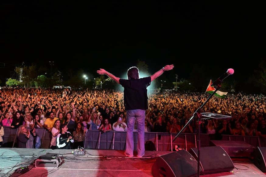 Το κοινό απάντησε υψώνοντας παλαιστινιακές και κόκκινες σημαίες, ενώ κάθε τραγούδι μετουσιωνόταν σε πολιτικό και συναισθηματικό μήνυμα, όπως μόνο ο Παπακωνσταντίνου γνωρίζει να μεταδίδει.