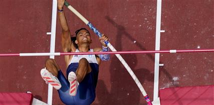 Το 2021 σε εικόνες: Ο τζαμαϊκανός Χανσλ Πάρτσμεντ κερδίζει στο νήμα την κούρσα των 110 μέτρων με εμπόδια στους Ολυμπιακούς Αγώνες