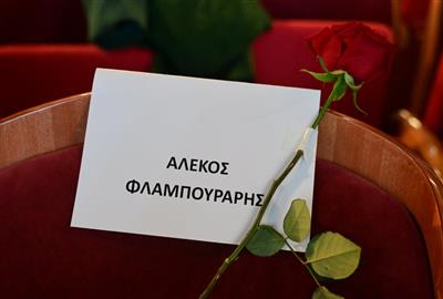Ο πρώην πρωθυπουργός, άφησε μία κενή θέση στο θέατρο Παλλάς με το όνομα του πρώην υπουργού του ΣΥΡΙΖΑ και ένα τριαντάφυλλο