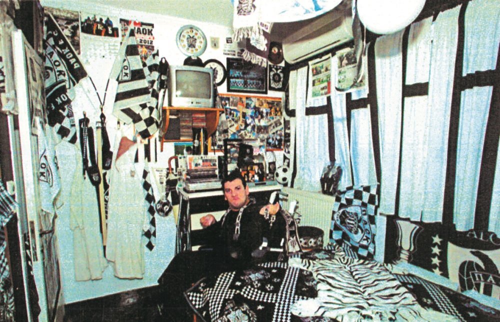 Έτσι είχε γίνει όταν πήγαµε στον Βόλο, για τον τελικό, όπως και πέρυσι στην Ξάνθη. Πηγαίνουµε όλοι µαζί, έρχεται και η µητέρα του. Ο Γιαννάκης το ζει το κάθε παιχνίδι. Από την αγωνία του, την προσπάθειά του να εκφραστεί, ιδρώνει συνέχεια. Ακόµα και αυτό τον ωφελεί. Ιδρώνει λες και έχει παίξει ο ίδιος. Ισως να είχε βάλει πολλά κιλά αν δεν έδειχνε τόσο µεγάλο πάθος για τον ΠΑΟΚ. Κάθε φορά που τελειώνει ένα παιχνίδι πρέπει να κάνει µπάνιο, να αλλάξει. Φέτος στην Ξάνθη ήταν αδύνατο να έρθει µαζί µας η µητέρα του. Και όµως, ο Γιαννάκης δέχθηκε να ταλαιπωρηθεί, να γυρίσουµε αµέσως µετά το µατς, µόνο και µόνο για να είναι κοντά στον ΠΑΟΚ.