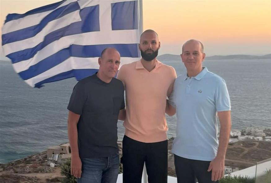 Με φόντο την ελληνική σημαία η φωτογραφία του Γάλλους με τους ιδιοκτήτες της ΚΑΕ Ολυμπιακός