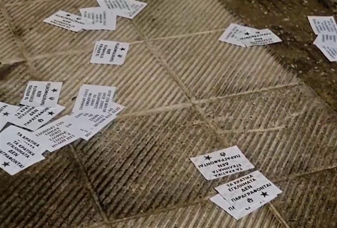 Στο σημείο υπήρχε και ένα αναποδογυρισμένο αυτοκίνητο, ενώ με σπρέι η ομάδα αγνώστων έγραψε «τα κρατικά εγκλήματα δεν παραγράφονται»
