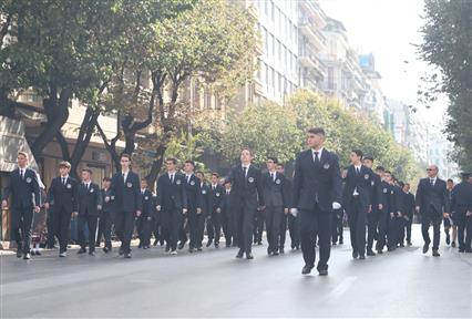 Πλήθος κόσμου συγκεντρώθηκε στους δρόμους του κέντρου της Αθήνας, για να παρακολουθήσει τη μαθητική παρέλαση για την επέτειο της 28ης Οκτωβρίου