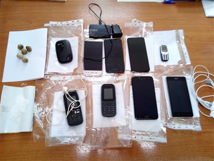 Στο σακίδιό του βρέθηκαν 203 ναρκωτικά χάπια «έκσταση», 10 συσκευασίες πακέτου σύνδεσης κινητής τηλεφωνίας, 10 κάρτες sim, πέντε κινητά τηλέφωνα και πέντε ακουστικά