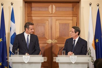 Mitsotakis on Cyprus: We choose peace and reconciliation, without giving up sovereign rightsHe added that illegal drilling for oil "isolate and undermine Turkey. My presence here marks the clear support Greece has for Cyprus' absolute right to exploit the entirety of its energy resources within the Cyprus EEZ."