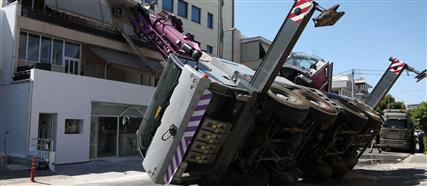 Από την πτώση του γερανού προκλήθηκαν εκτεταμένες φθορές στο σπίτι