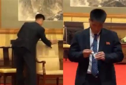 Η σχολαστική απολύμανση των επίπλων και η απομάκρυνση του ποτηριού του ηγέτη της Βόρειας Κορέας - Το χαρακτηριστικό στιγμιότυπο που κατέγραψε κάμερα