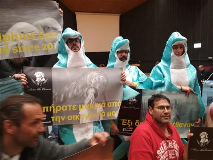 Στο βίντεο που ακολουθεί μπορείτε να δείτε τους ακτιβιστές να εμφανίζονται ως δελφίνια σε συζήτηση στο Περιφερειακό Συμβούλιο