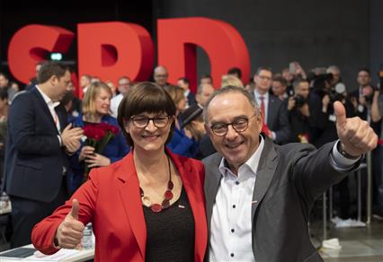 Γερμανία: Η... λίστα του Μπόργιανς κλονίζει τον µεγάλο συνασπισµόΟι προτάσεις της νέας διαρχίας-ηγεσίας των Γερµανών Σοσιαλδηµοκρατών, Νόρµπερτ Βάλτερ Μπόργιανς και η ΣάσκιαΕσκεν, για αύξηση κρατικών δαπανών, µε στόχο να µπει φρένο στον κατήφορο των εκλογικών ποσοστών του SPD, θέτουν εν αµφιβόλω το µέλλον της συγκυβέρνησης με τους Χριστιανοδημοκράτες