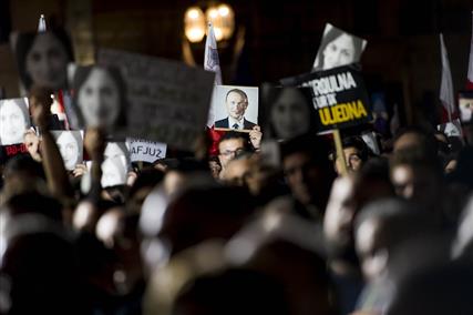 Λϊγες ώρες νωρίτερα, το κόμμα του τον στήριξε - Έξω από το γραφείο του Τζόζεφ Μουσκάτ βρίσκονται πολίτες που κρατούν πλακάτ και φωτογραφίες της δημοσιογράφου Ντάφνι Καρουάνα Γκαλίζια