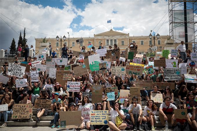The school students gathered in Monastiraki Square and then marched to Syntagma Square and the Greek parliament