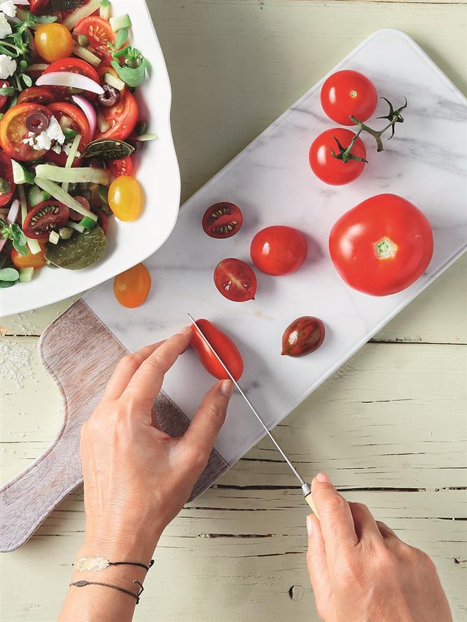 Για τη μέση του τραπεζιού ή για κυρίως πιάτο (ειδικά αν περιέχουν όσπρια ή ζυμαρικά), οι δροσερές σαλάτες με λαχανικά εποχής είναι πάντα ευπρόσδεκτες τους θερινούς μήνες.
