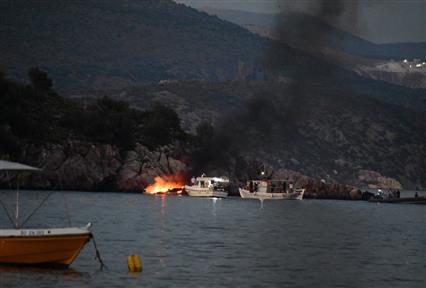 Ένα σκάφος καταστράφηκε ολοσχερώς και βυθίστηκε, ενώ η φωτιά μαίνεται σε άλλα τρία
