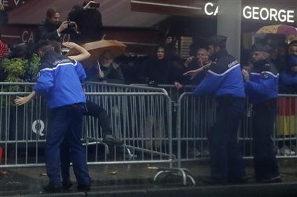 Οι γυναίκες, μέλη της φεμινιστικής οργάνωσης Femen, κατάφεραν να ανέβουν στην εξέδρα, στην Πλάθα δε Κολόν, προτού να τις απομακρύνουν οι άνδρες της ασφάλειας