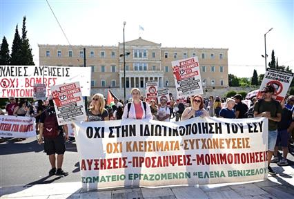 Ολοκληρώθηκε η απεργιακή συγκέντρωση των εργαζομένων του Δημόσιου, με πορεία η οποία έφτασε μπροστά στη Βουλή