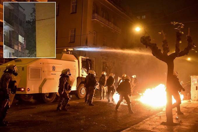 Με μολότοφ από μπαλκόνια και ταράτσες απαντούν οι διαδηλωτές στις προσπάθειες της ΕΛ.ΑΣ. να διαλύσουν τις εστίες της έντασης