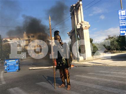 Τα επεισόδια ανάμεσα στους κουκουλοφόρους και αστυνομικούς των ΜΑΤ έφτασαν μέχρι και τους στύλους του Ολυμπίου Διός.
