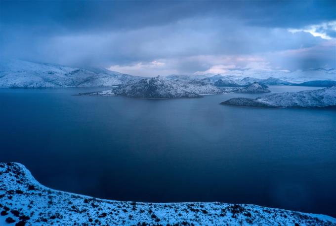 Μετά τις σφοδρές χιονοπτώσεις η λίμνη της Βοιωτίας δείχνει τελείως διαφορετική